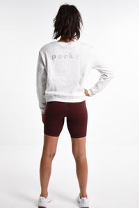 - Classy Details: Features an embroidered logo on the sleeve and bold "Perky" text on the back.